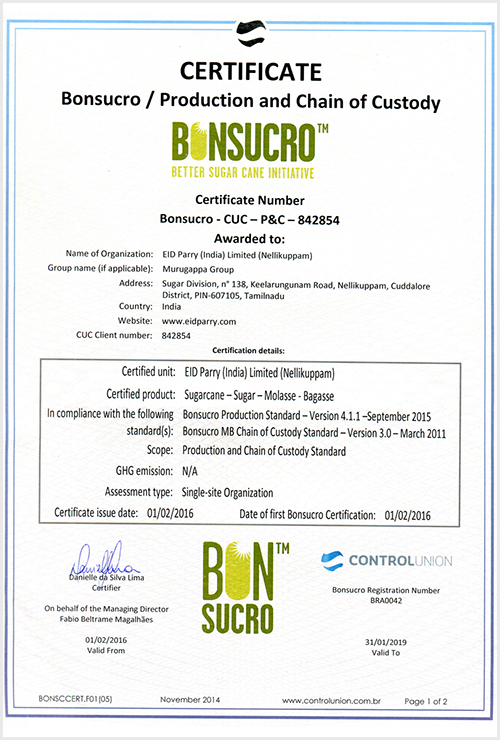 Sugar – Certifications